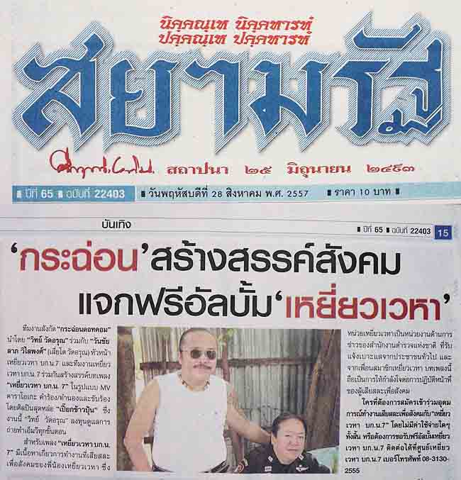 ขอขอบคุณหนังสือพิมพ์ สยามรัฐ และ คุณชาย ราชดำเนิน ที่ได้ให้การสนับสนุนด้วยดีเสมอมาครับ