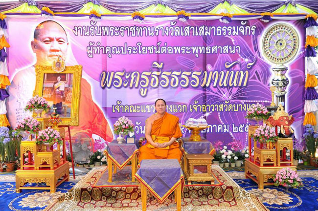 ทีมงานกะฉ่อนดอทคอมขอร่วมแสดงความยินดีกับ ท่านพระครูธีรธรรมานันท์ เจ้าอาวาสวัดบางแวก เจ้าคณะแขวงบางแวก ที่ได้รับพระราชทานเสาเสมาธรรมจักร จาก สมเด็จพระเทพรัตนราชสุดาฯ สยามบรมราชกุมารี ประเภท ๓ ส่งเสริมเผยแผ่พระพุทธศาสนา (สาขาการเผยแผ่พระพุทธศาสนาในประเทศ) เมื่อวันศุกร์ที่ ๒๙ พฤษภาคม ๒๕๕๘ ซึ่งเป็นรางวัลอันทรงเกียรติสำหรับวัดบางแวกและชาวบางแวก เป็นเครื่องยืนยันถึงความมุ่งมั่นของ ท่านพระครูธีรธรรมานันท์ เจ้าอาวาสวัดบางแวก เจ้าคณะแขวงบางแวก