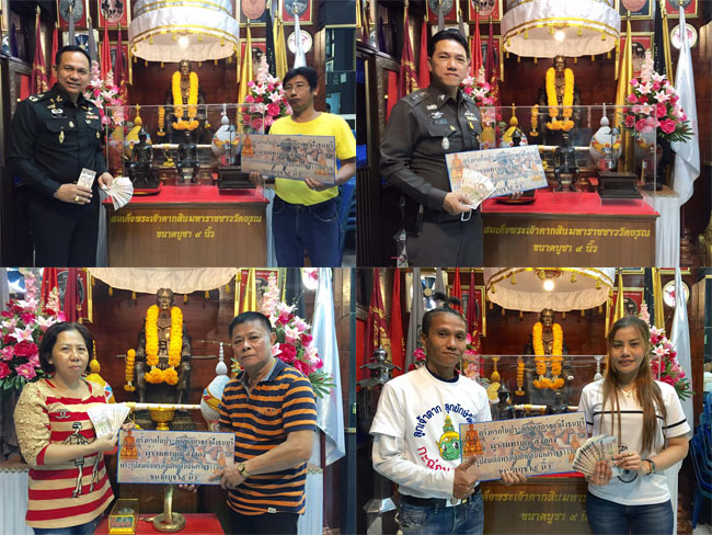 1.เหรียญสมเด็จพระเจ้าตากสินมหาราชชาววัดอรุณ เนื้อตะกั่วลงยาลายธงชาติ สร้างขึ้นโดยการนำเหรียญสมเด็จพระเจ้าตากสินมหาราชชาววัดอรุณ เนื้อตะกั่ว มาทำการแกะลายแล้วลงยาเป็นลายธงชาติ จำนวนการสร้าง 216 เหรียญ แบ่งบรรจุในใต้ฐานพระรูปละ 1 เหรียญ และยังสร้างเหรียญสมเด็จพระเจ้าตากสินมหาราชชาววัดอรุณ เนื้อตะกั่วแกะลายลงยา อีก 4 สี จำนวนการสร้างสีละ 108 เหรียญ เพื่อให้เป็นเอกลักษณ์พิเศษของงานมหาพุทธามหาเทวาภิเษกพระรูปสมเด็จพระเจ้าตากสินมหาราชชาววัดอรุณขนาดบูชา เพื่อให้พี่น้องประชาชนผู้ศรัทธาในองค์พระบาทสมเด็จพระเจ้าตากสินมหาราช ได้ร่วมทำบุญในราคาเหรียญละ 400 บาท เพื่อเก็บรักษาบูชาไว้เป็นที่ระลึกและท่านยังได้ร่วมทำบุญอีกต่อหนึ่งด้วย เพราะเงินรายได้ทั้งหมดในการจำหน่ายเหรียญในครั้งนี้ จะนำไปเป็นกองทุนในการจัดงานวันพระบาทสมเด็จพระเจ้าตากสินมหาราช 28 ธันวาคม 2559 ซึ่งลูกหลานชาววัดอรุณจะจัดพิธีบวงสรวงและการแสดงต่างๆมากมายอาทิเช่น มังกร สิงโต กระตั้ว กลองยาว พินแคน กระบี่กระบอง เพื่อเทิดพระเกียรติถวายในพระองค์ท่านเป็นประจำทุกๆปีอย่างยิ่งใหญ่สมพระเกียรติในพระองค์ท่าน ณ ศาลสมเด็จพระเจ้าตากสินมหาราชชาววัดอรุณ ปากซอยวังเดิม 3 แขวงวัดอรุณ เขตบางกอกใหญ่ กรุงเทพฯ ซึ่งเหรียญสมเด็จพระเจ้าตากสินมหาราชชาววัดอรุณนั้น เป็นเหรียญที่จัดสร้างขึ้นด้วยเจตนาที่บริสุทธิ์ ปลุกเสกอย่างถูกต้องตามประเพณีโบราณทุกประการ โดยพระคณาจารย์ผู้เรืองวิทยาคมแห่งยุคปัจจุบันอาทิเช่น หลวงพ่อพระมหาสุรศักดิ์ เจ้าอาวาสวัดประดู่พระอารามหลวง จ.สมุทรสงคราม หลวงพ่อตี๋ เจ้าอาวาสวัดหูช้าง จ.นนทบุรี พระอาจารย์ป้อม เจ้าอาวาสวัดหนองม่วง จังหวัดราชบุรี พระอาจารย์อภิญญา(หลวงพ่อญา) วัดบางพระ จ.นครปฐม พระอาจารย์หนุ่ม วัดบางแวก จ.กรุงเทพฯ เป็นเหรียญที่มากด้วยประสบการณ์เช่น รายล่าสุดหนุ่มคาร์แคร์โดนไฟดูดกว่าสองนาที แต่กลับรอดตายได้ราวปาฏิหารย์ ด้วยพระบารมีของเหรียญสมเด็จพระเจ้าตากสินมหาราชชาววัดอรุณที่เขาห้อยอยู่ เป็นข่าวเกรียวกราวตามหน้า หนังสือพิมพ์หลายๆฉบับ เช่น ข่าวสด คมชัดลึก บ้านเมือง สยามรัฐ กำลังเป็นที่ต้องการเสาะหาบูชา ของผู้ที่เคารพรักและศรัทธาในองค์พระบาทสมเด็จพระเจ้าตากสินมหาราชอยู่ในขณะนี้ ท่านสามารถติดต่อร่วมทำบุญได้ที่หน้าบริเวณจัดงานพิธีมหาพุทธามหาเทวาภิเษกพระรูปสมเด็จพระเจ้าตากสินมหาราชชาววัดอรุณ ขนาดบูชา 9 นิ้ว ในวันอาทิตย์ที่ 9 ตุลาคม 2559 ณ พระวิหารน้อยหน้าพระปรางค์วัดอรุณ หรือก่อนวันจัดงานได้ที่ ศาลส