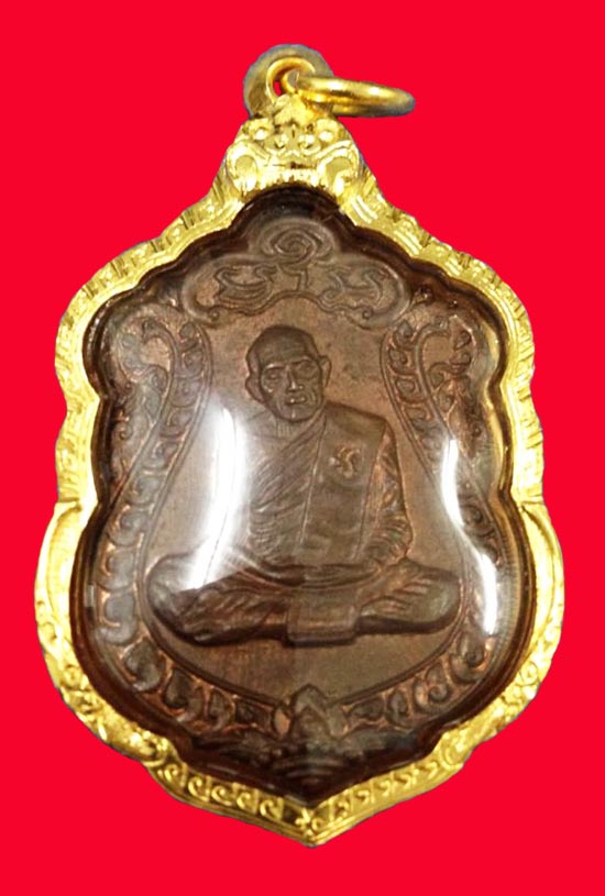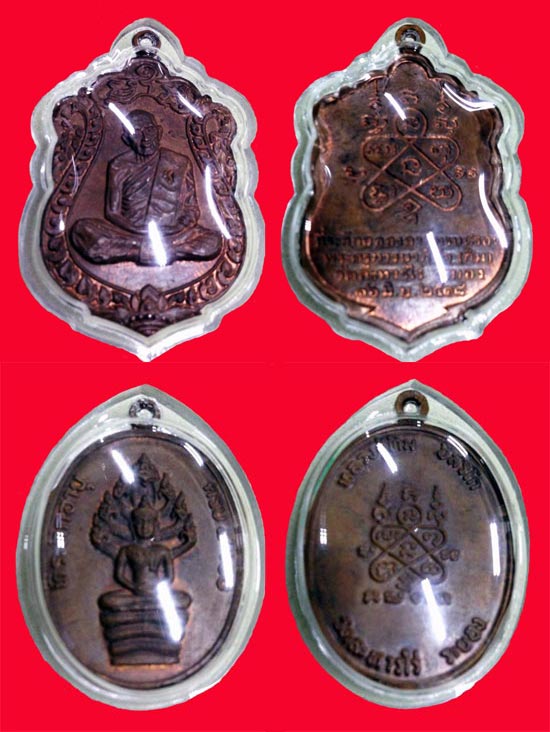 1.เเบบลงยาสองสี คือสีเเดง บริเวณกนกรอบใบเสมาเเต่บริเวณอักขระด้านบนเหนือศรีษะของหลวงปู่จะเป็นสีน้ำเงิน