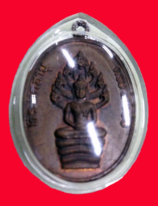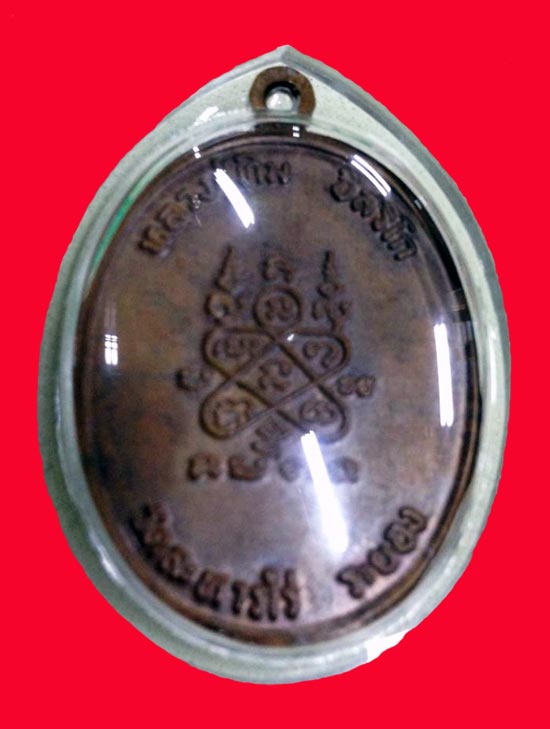 2. เเบบลงยาสีเดียวคือ ทั้งบริเวณใบกนกรอบเสมาเเละอักขระด้านบนเหนือศรีษะของหลวงปุ่จะมีสีเเดงเพียงอย่างเดียว